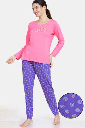 Buy Zivame Impression Knit Cotton Pyjama Set - Purple Corallites