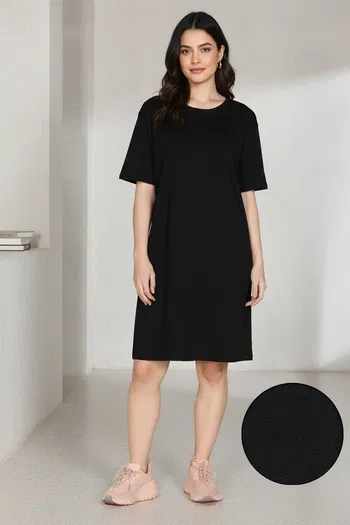 Buy Zivame 2 Mile Fashion Knit Cotton Loungewear Dress - Black Beauty