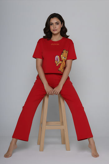 Buy Zivame Garfield Knit Cotton Loungewear Set - Mars Red