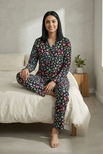 Buy Zivame Buttersoft Knit Poly Pyjama Set - Black Beauty