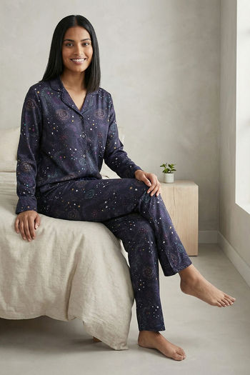 Buy Zivame Buttersoft Knit Poly Pyjama Set - Evening Blue