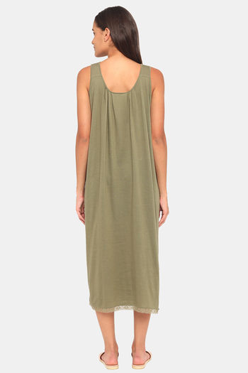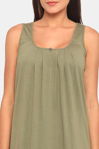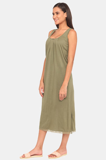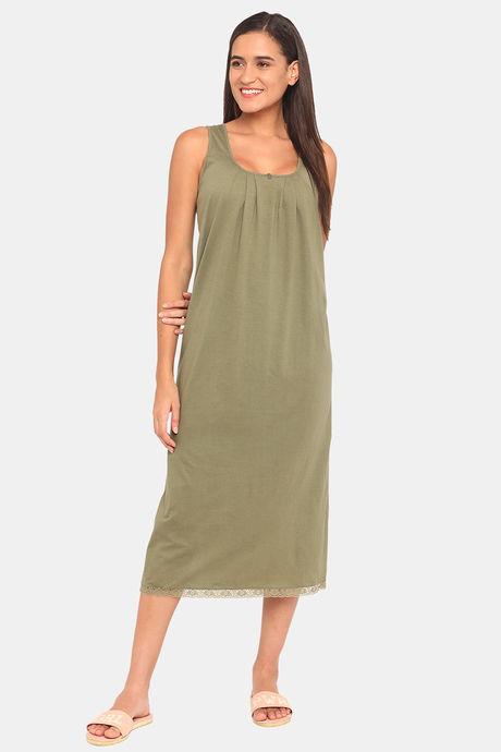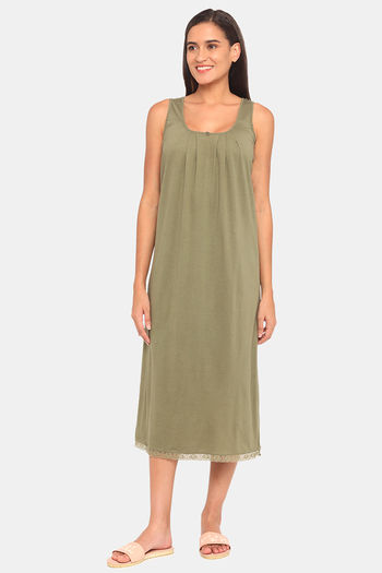 Red Rose Cotton Night Dress - Green