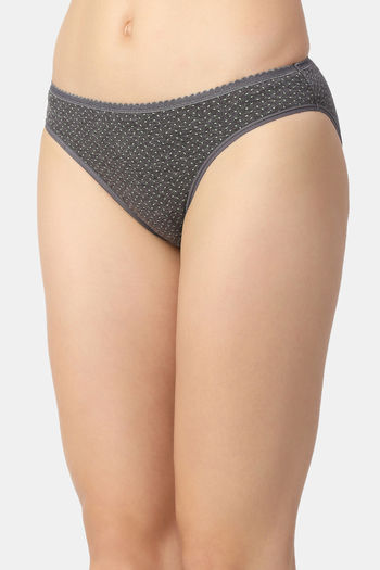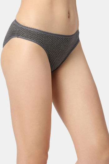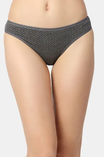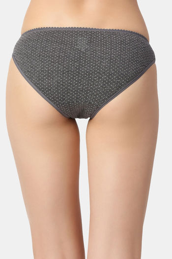 Red Rose Low Rise Half Coverage Bikini Panty - Dark Grey
