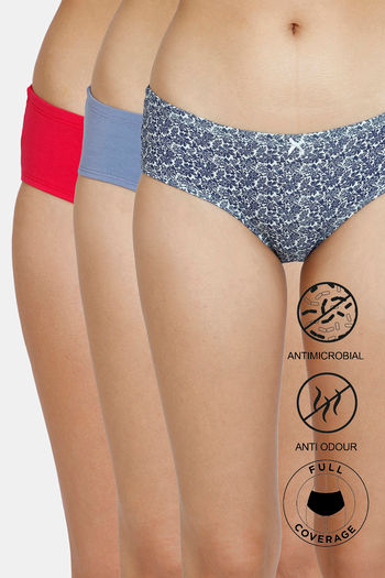 Zivame Anti-Microbial Low Rise Full Coverage Hipster Panty (Pack of 3) - Multicolor