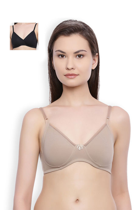 Rosaline Everyday Double Layered Non Wired Medium Coverage Bra (Pack of 2) - Multicolor