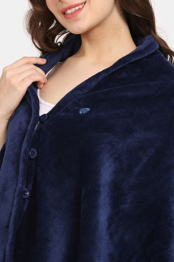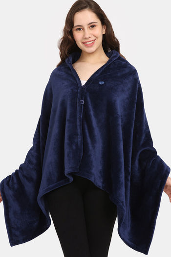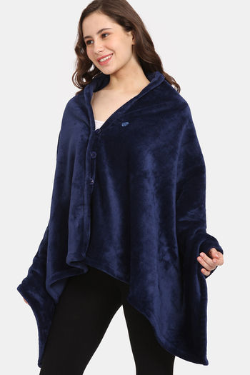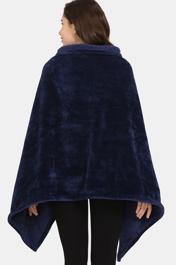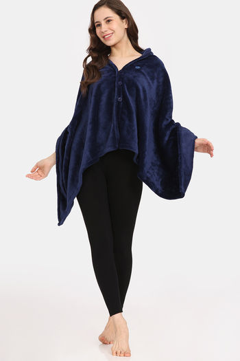 Rosaline Minky Plush Fleece Knit Poly Poncho - Ocean Caveran