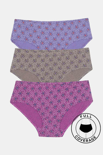 Rosaline Pure Cotton Full Coverage Floral Swirls Panty (Pack of 3)