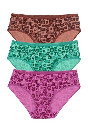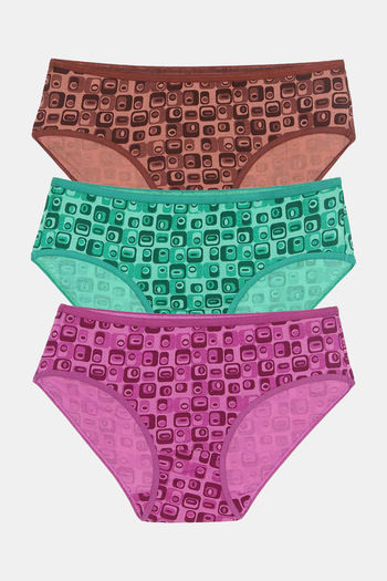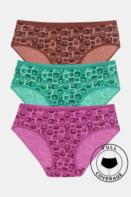 Rosaline Pure Cotton Full Coverage Slim Elastic Brief (Pack of 3)- Circles n Squares Print