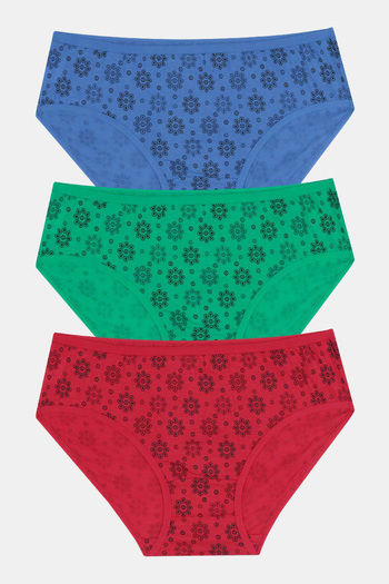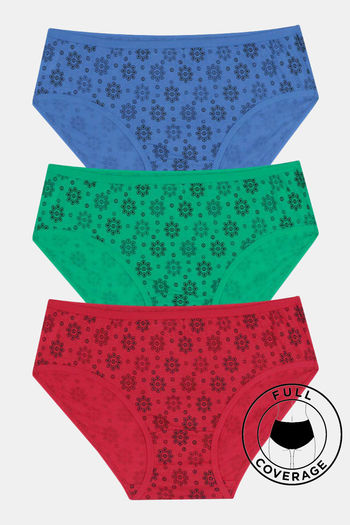 Rosaline Pure Cotton Full Coverage Slim Elastic Panty (Pack of 3)- Ellipta Print
