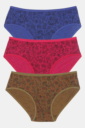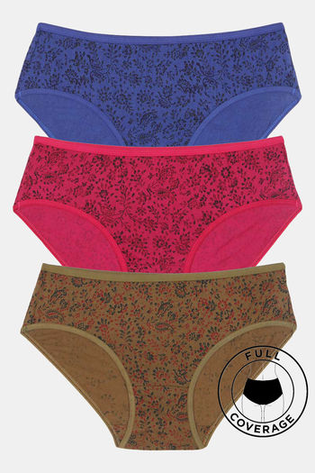 Rosaline Pure Cotton Full Coverage Slim Elastic Panty (Pack of 3)- Floral Splash Print