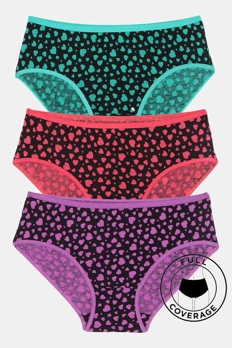 Rosaline Pure Cotton Full Coverage Zigzag Panty (Pack of 3)- Heart n Star Print