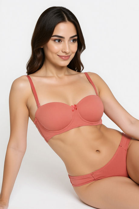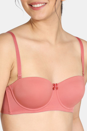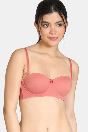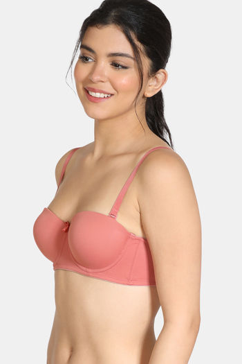 Zivame Beautiful Basics Padded Wired 3/4th Coverage Strapless Bra - Dusty Cedar