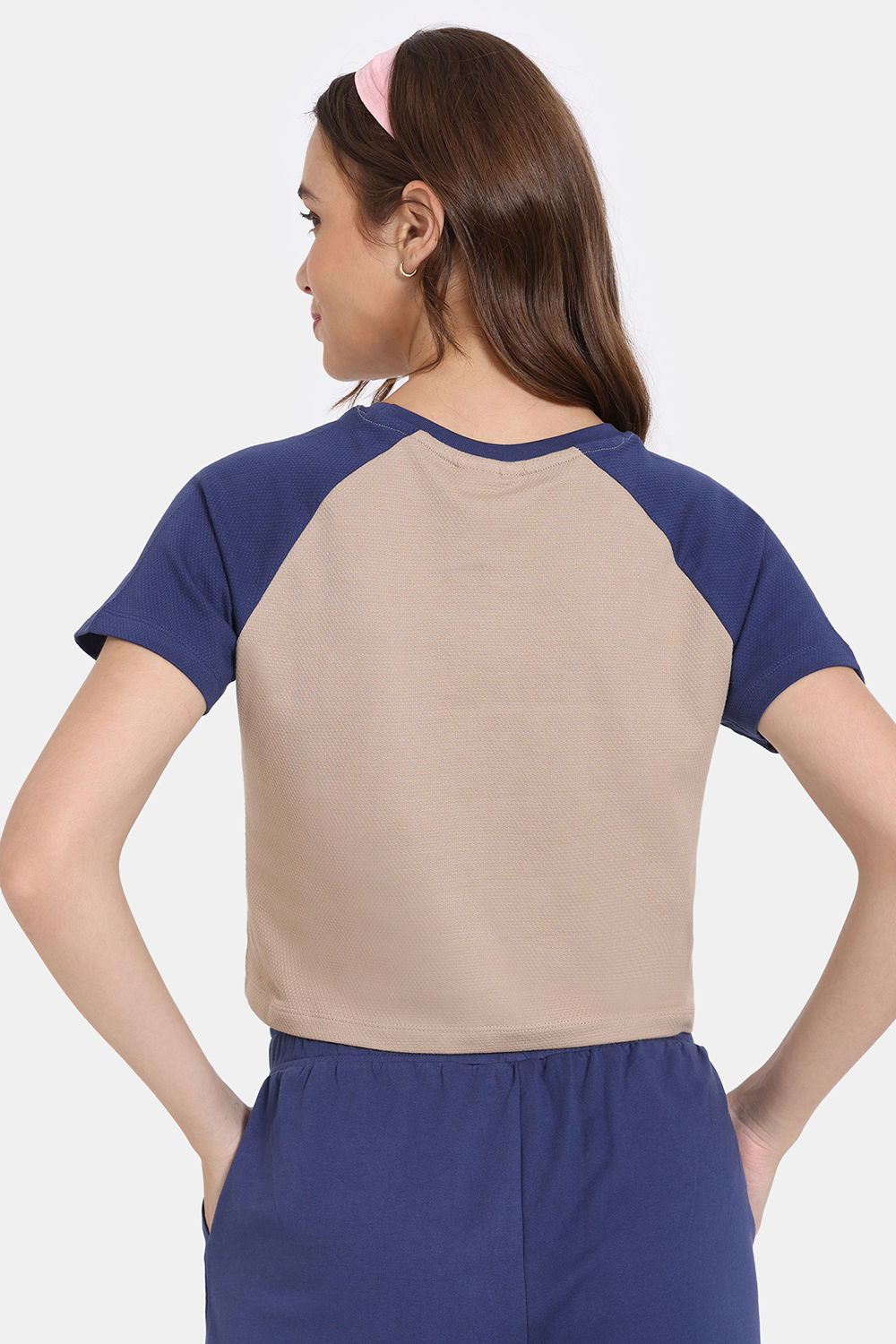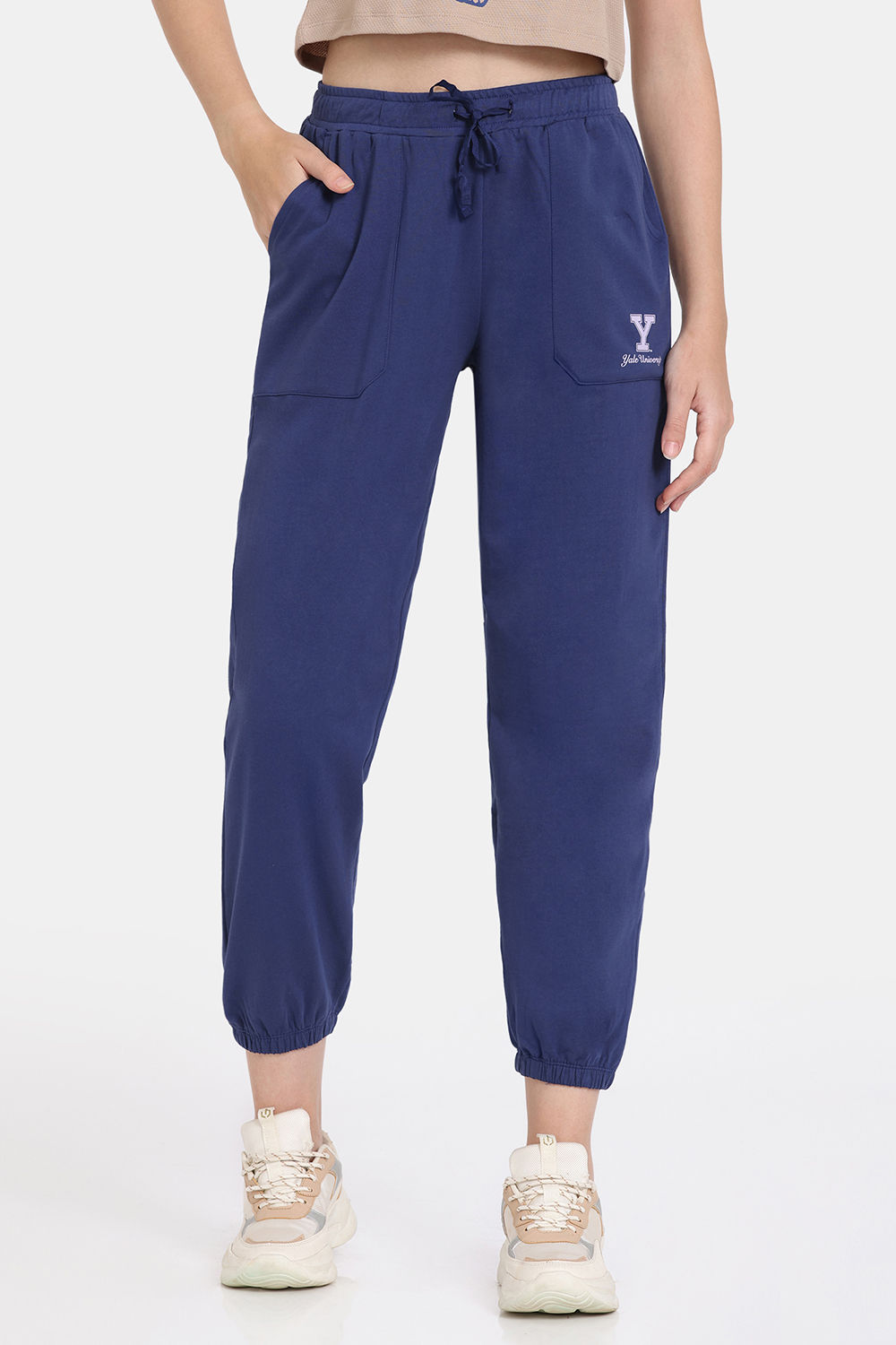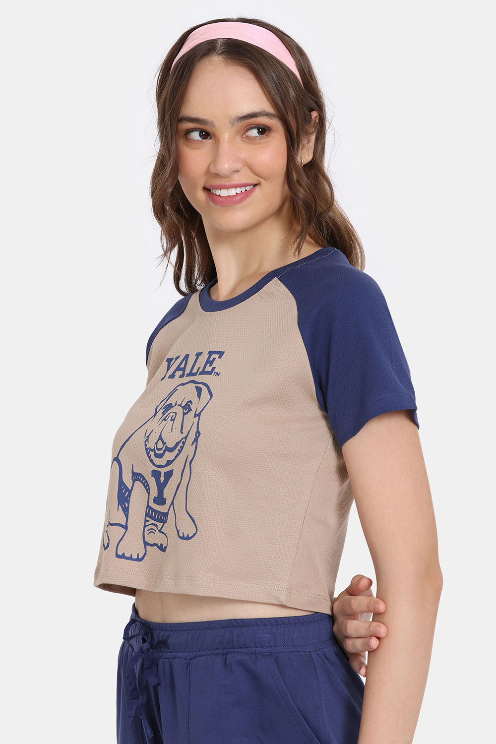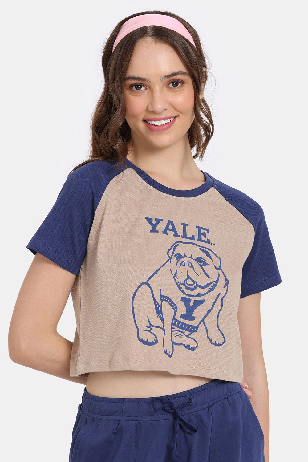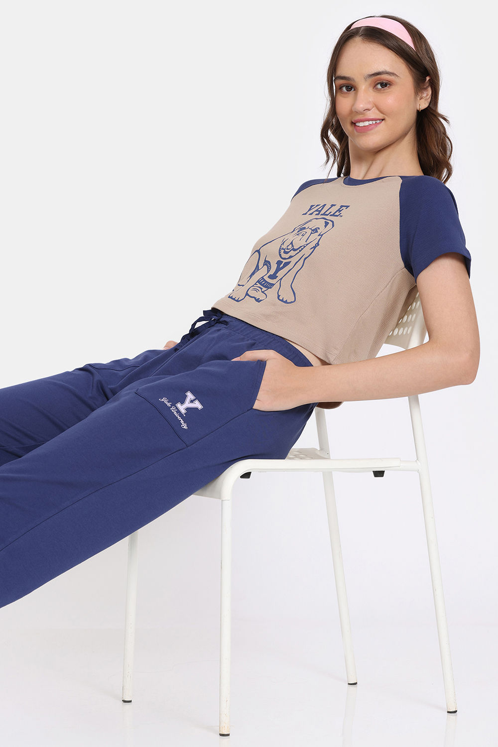 Rosaline Yale University Easy Movement Contour Top with Track pant - Light Taupe - Bellwether Blue