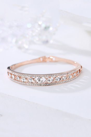 Yellow Chimes Rose gold Toned Sparkling White Crystals Bracelet