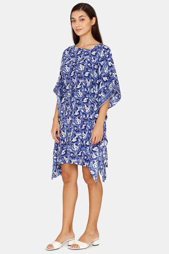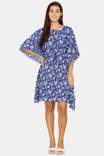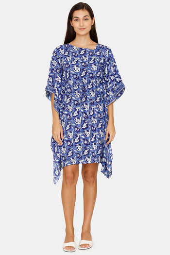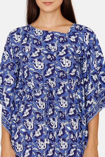 Rozerra Slip-On Rayon Cover-Up Poncho - Blue