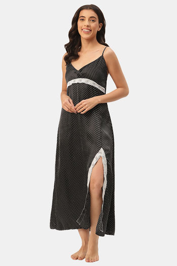 Nightdress or nighty - an easy-fit comfortable dress in soft fabrics, for lounging or sleeping.