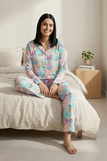 Buy Zivame Knit Cotton Pyjama Set - Pampas