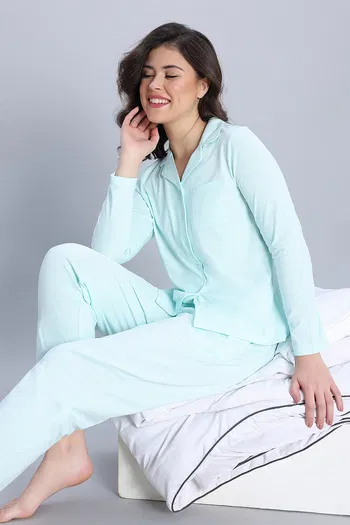 Buy Zivame Knit Cotton Pyjama Set - Opal Blue