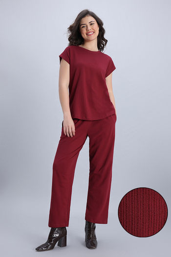 Buy Zivame Knit Cotton Loungewear Set - New Maroon