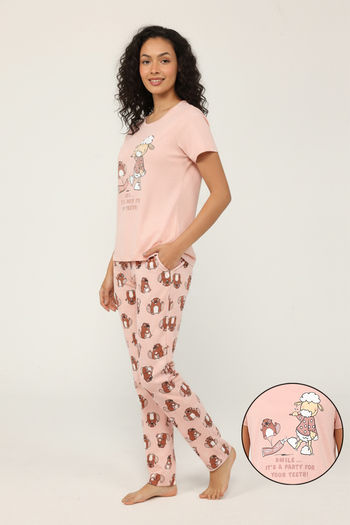 Buy Zivame Knit Cotton Pyjama Set - Quartz Pink