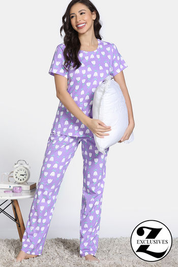 Buy Zivame Farm Lore Knit Cotton Pyajama Sets - Lavender