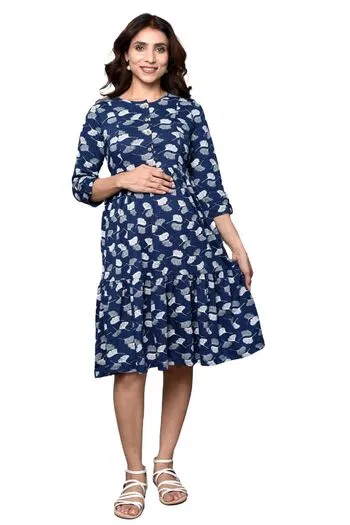 Buy Inner Sense Organic Cotton Bamboo Nursing Dress - Navy Petals