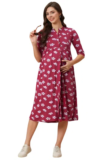 Buy Inner Sense Organic Cotton Bamboo Nursing Dress - Wine Sakura