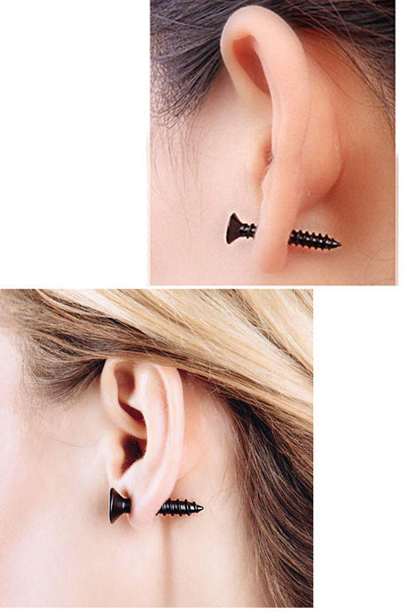 Yellow Chimes Screw Craft 316L Stainless Steel Black Stud Earrings