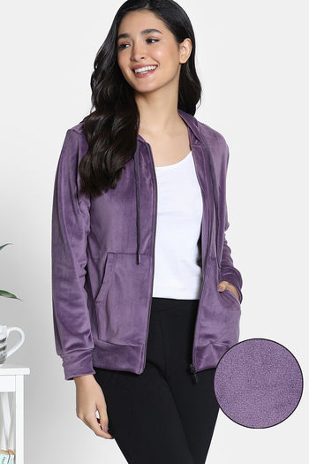 Zivame Knit Poly Velour Jacket - Purple Pennat