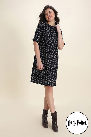 Zivame Harry Potter Knit Cotton Loungewear Dress - Black Beauty