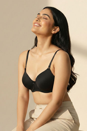 Zivame Soft n Sheen Padded Non Wired 3/4th Coverage T-Shirt Bra - Black