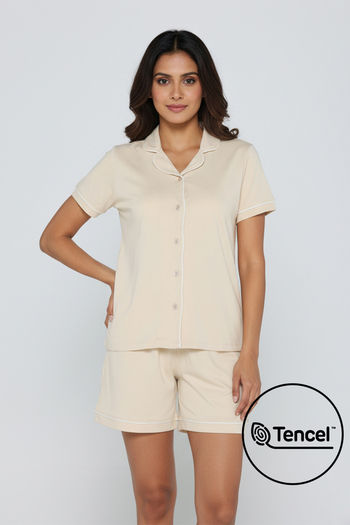 Zivame Tencel Knit Cotton Short Set - Parchment