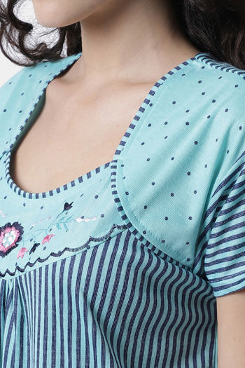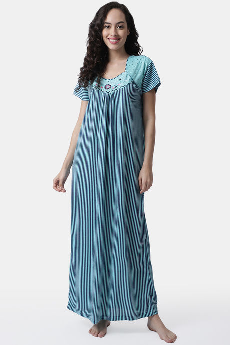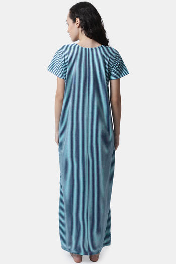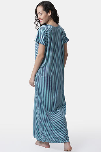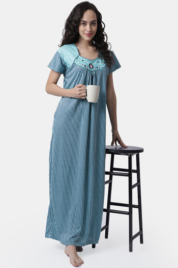 Secret Wish Knit Cotton Full Length Nightdress - Blue