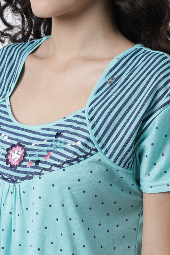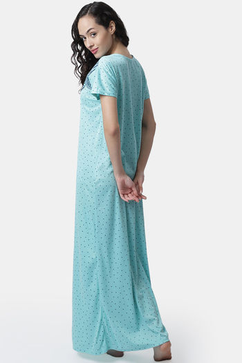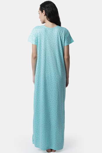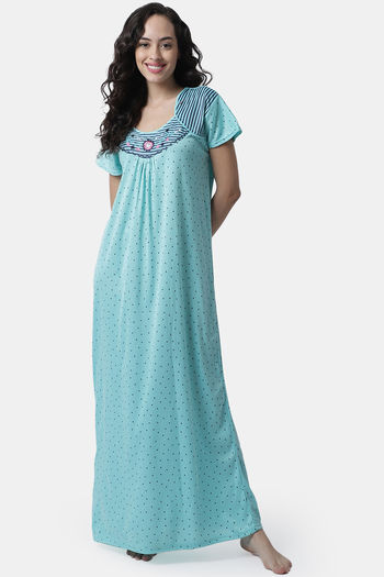Secret Wish Knit Cotton Full Length Nightdress - Blue