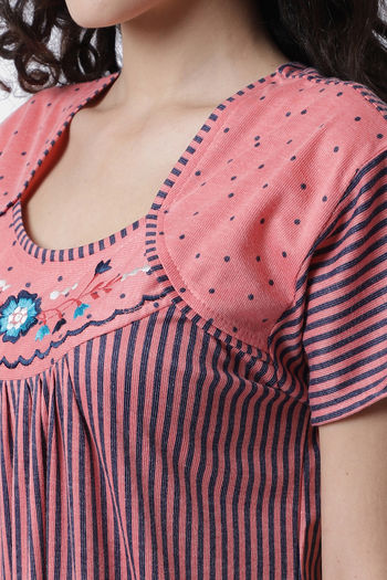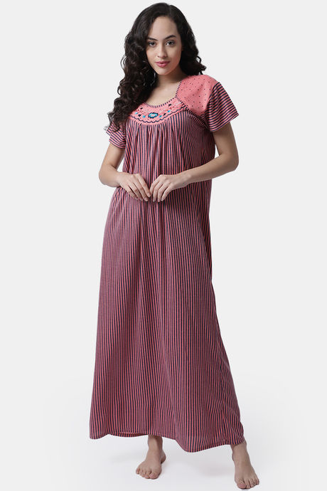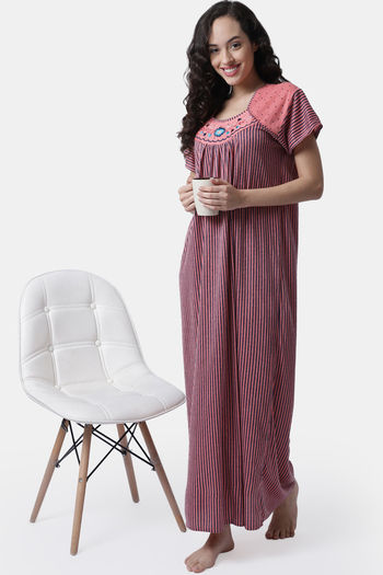Secret Wish Knit Cotton Full Length Nightdress - Pink