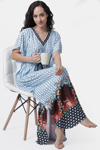 Secret Wish Polyester Loungewear Dress - Blue