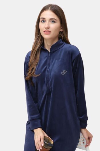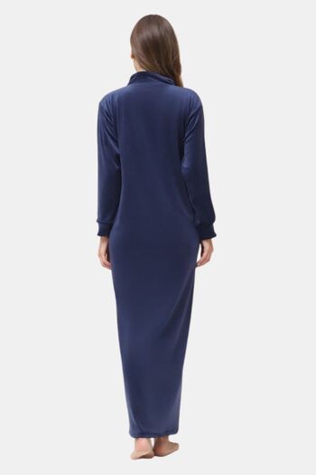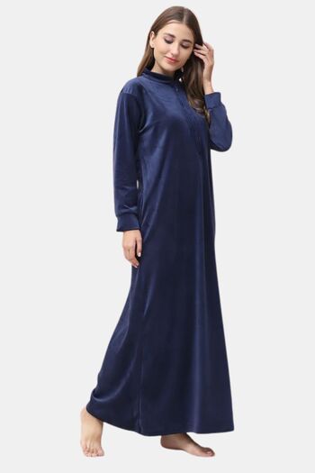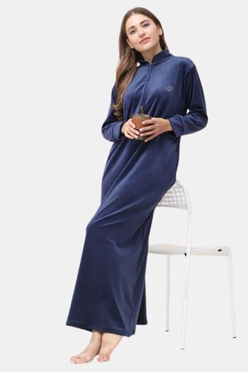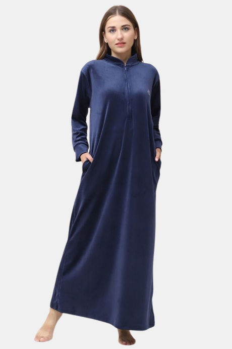 Secret Wish Velvet Full Length Nighty - Navy Blue