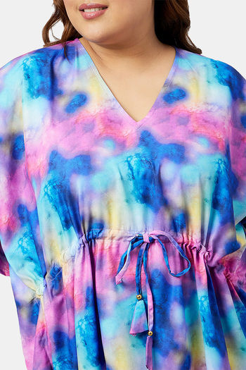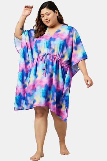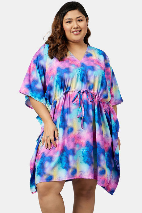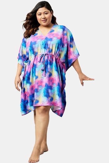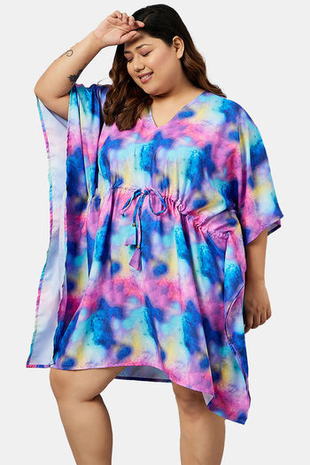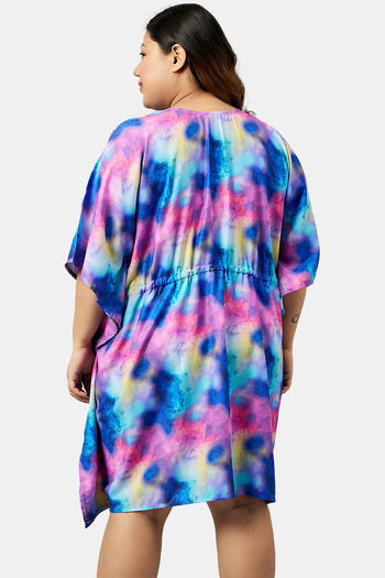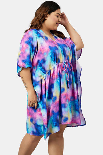Secrets By ZeroKaata Plus Size Printed Kaftan Cover Up - Blue