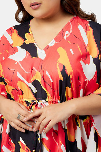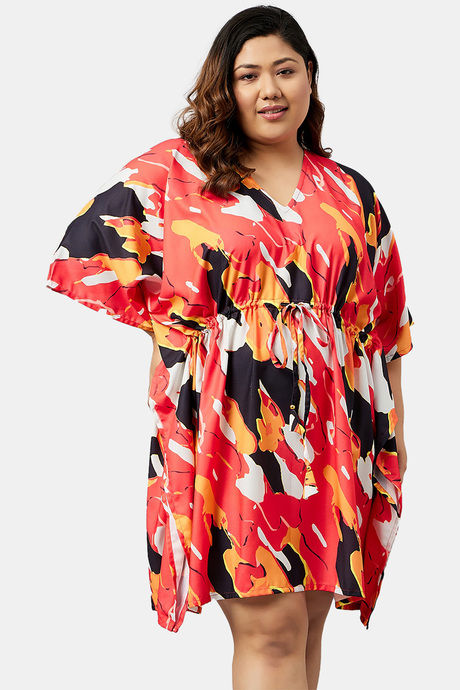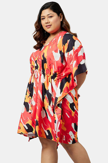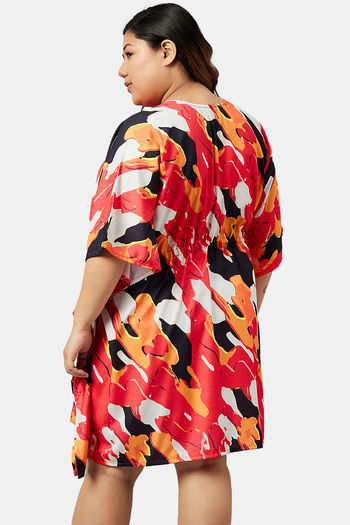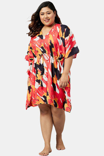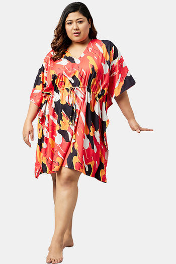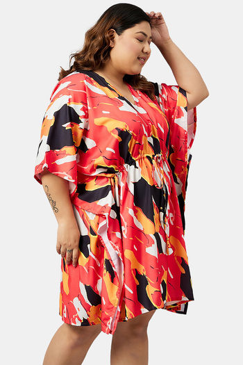 Secrets By ZeroKaata Plus Size Printed Kaftan Cover Up - Red