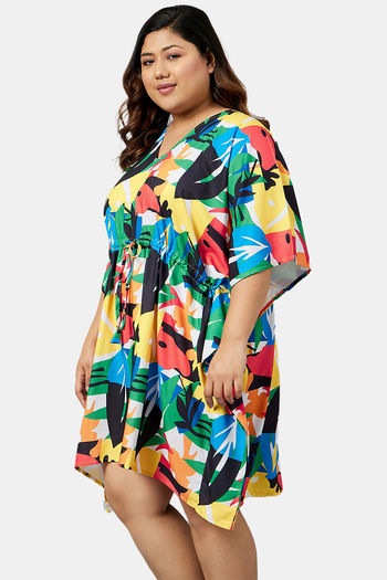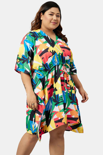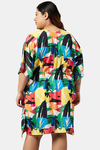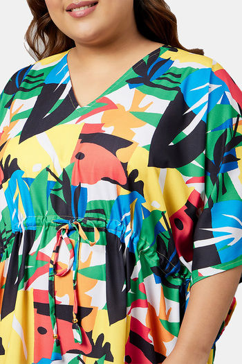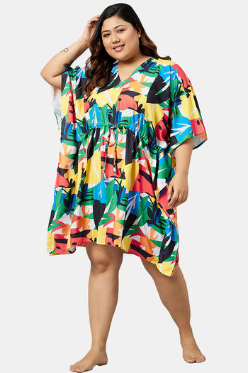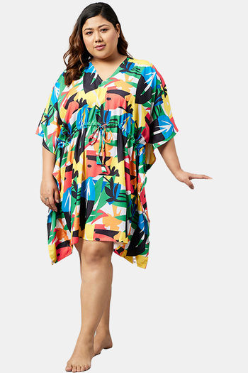 Secrets By ZeroKaata Plus Size Printed Kaftan Cover Up - Turquoise