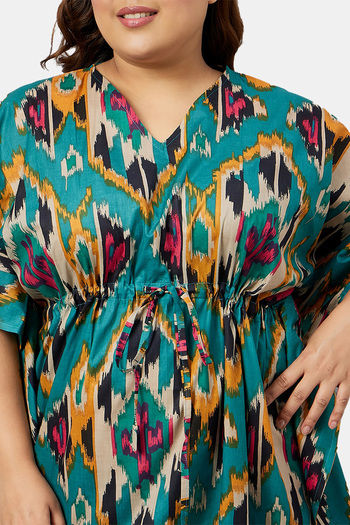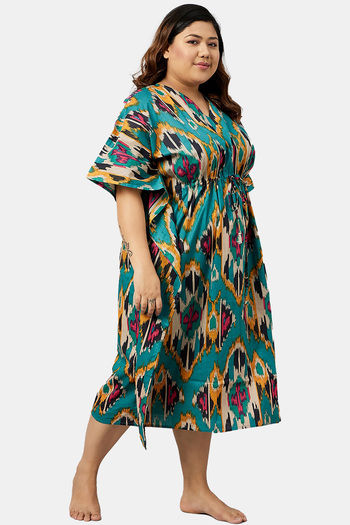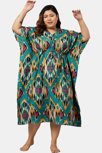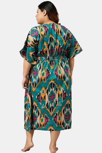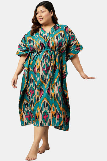 Secrets By ZeroKaata Plus Size Pure Cotton Printed Kaftan Cover Up - Olive Green