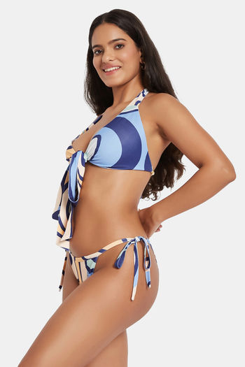 Secrets By ZeroKaata Printed Halter Beachwear Bikini Set - Blue