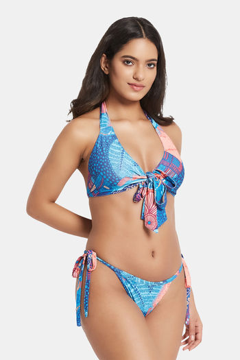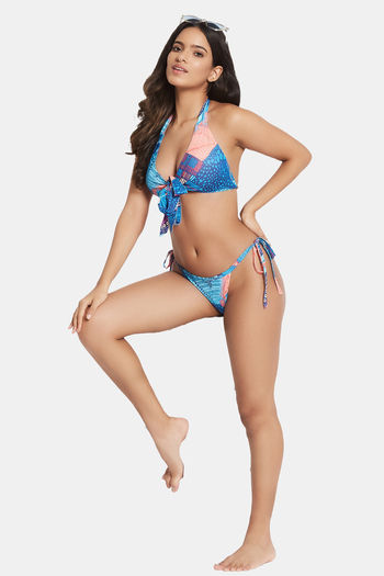 Secrets By ZeroKaata Printed Halter Beachwear Bikini Set - Dark Blue