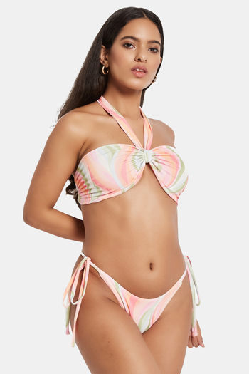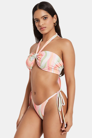 Secrets By ZeroKaata Printed Halter Beachwear Bikini Set - Peach