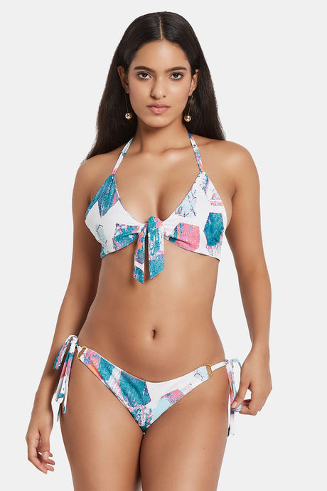 Secrets By ZeroKaata Printed Halter Beachwear Bikini Set - Sku Blue