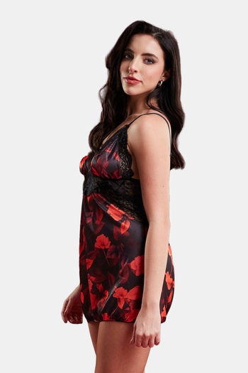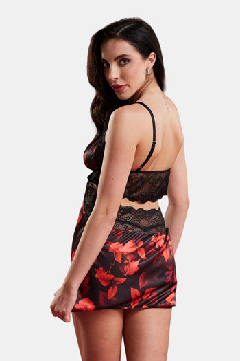 Secrets By ZeroKaata Printed Satin Baby Doll For Women- Multicolor