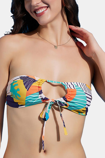 Secrets By ZeroKaata Printed Strapless Bikini Set - Multicolor