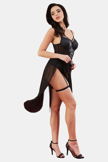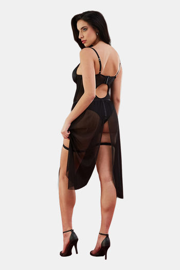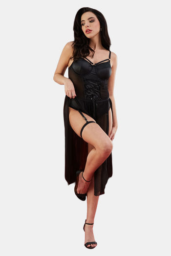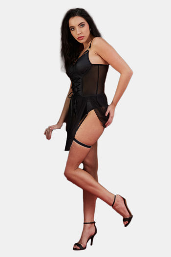 Secrets By ZeroKaata Sheer Corset-Style Baby Doll For Women- Black