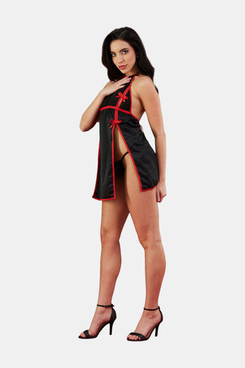Secrets By ZeroKaata Sheer Short Baby Doll For Women- Black