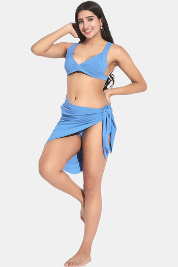 Secrets By ZeroKaata Stretchable Ribbed Bikini Set With Sarong - Dark Sky